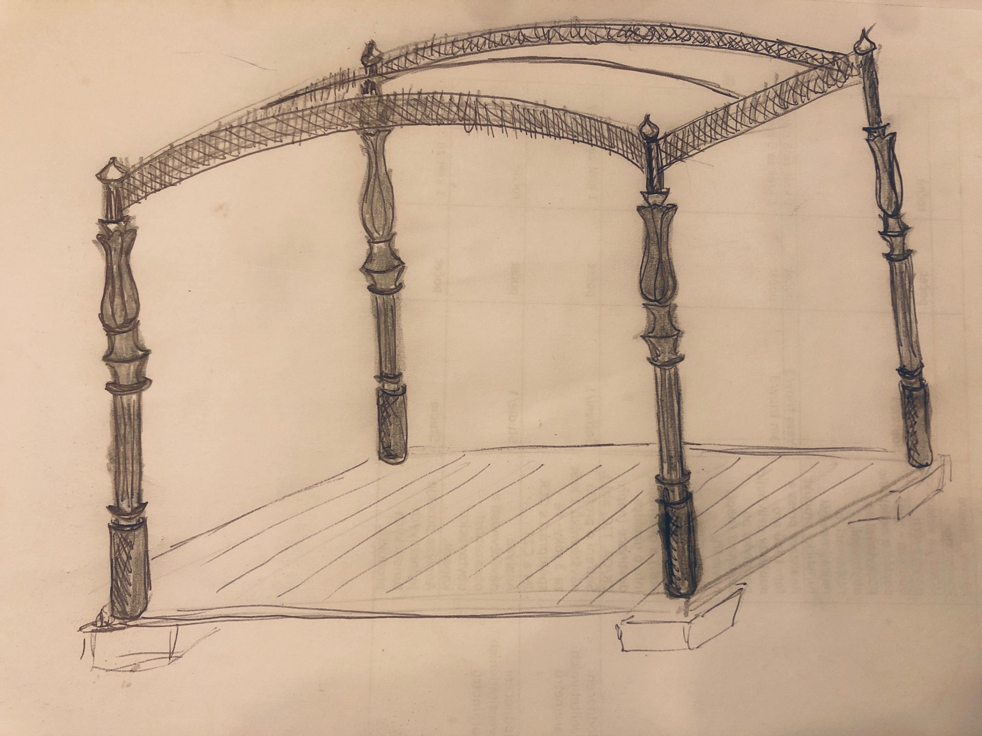 Strop – nosné sloupy budou provázány třemi litinovými oblouky (viz náčrt),