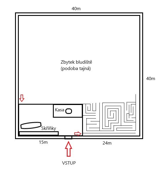 V suterénu se bude nacházet bludiště vyrobené převážně z desek OSB, natřené na černou barvu, skýtající malý vestibul, s možností odložení věcí, odpočinku a malého občerstvení. Celou vestavbu bude možno ukotvit samu do sebe, takže nebude porušena nosná konstrukce objektu. Režimy bludiště se budou dělit na plně osvětlené pro děti a s minimem světla pro starší. V možnostech je i trasa s „čelovkami“.