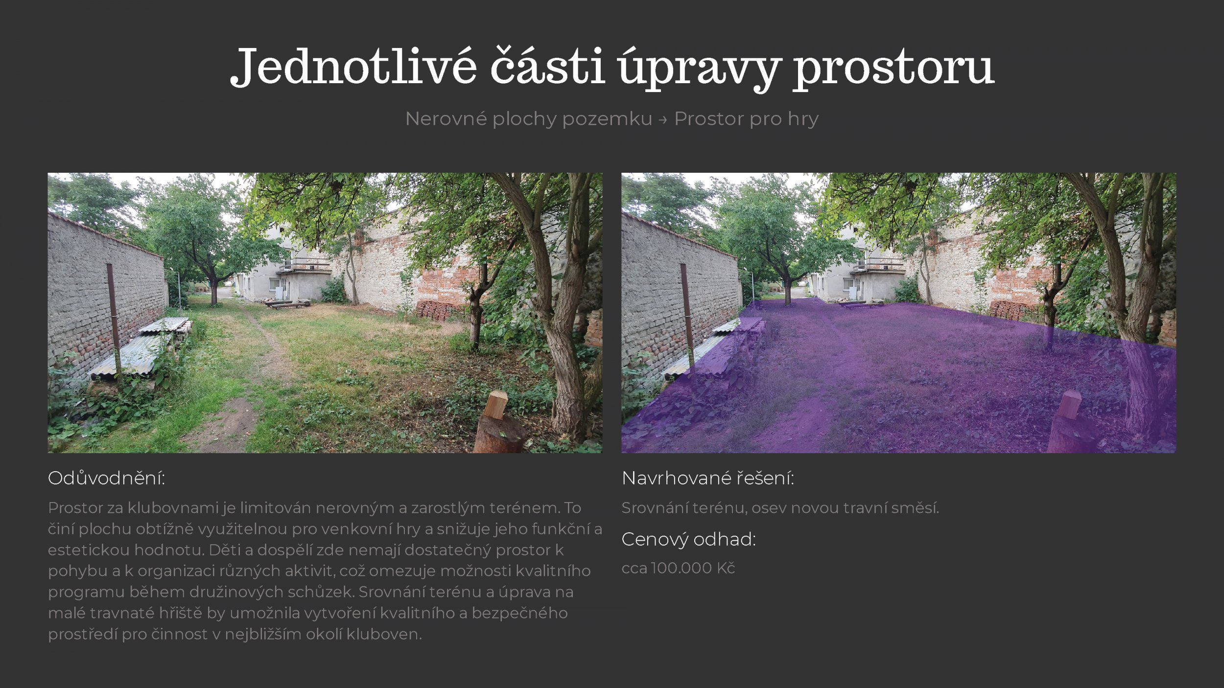 # Nerovné plochy pozemku → Prostor pro hry ...................................... 100.000 Kč
