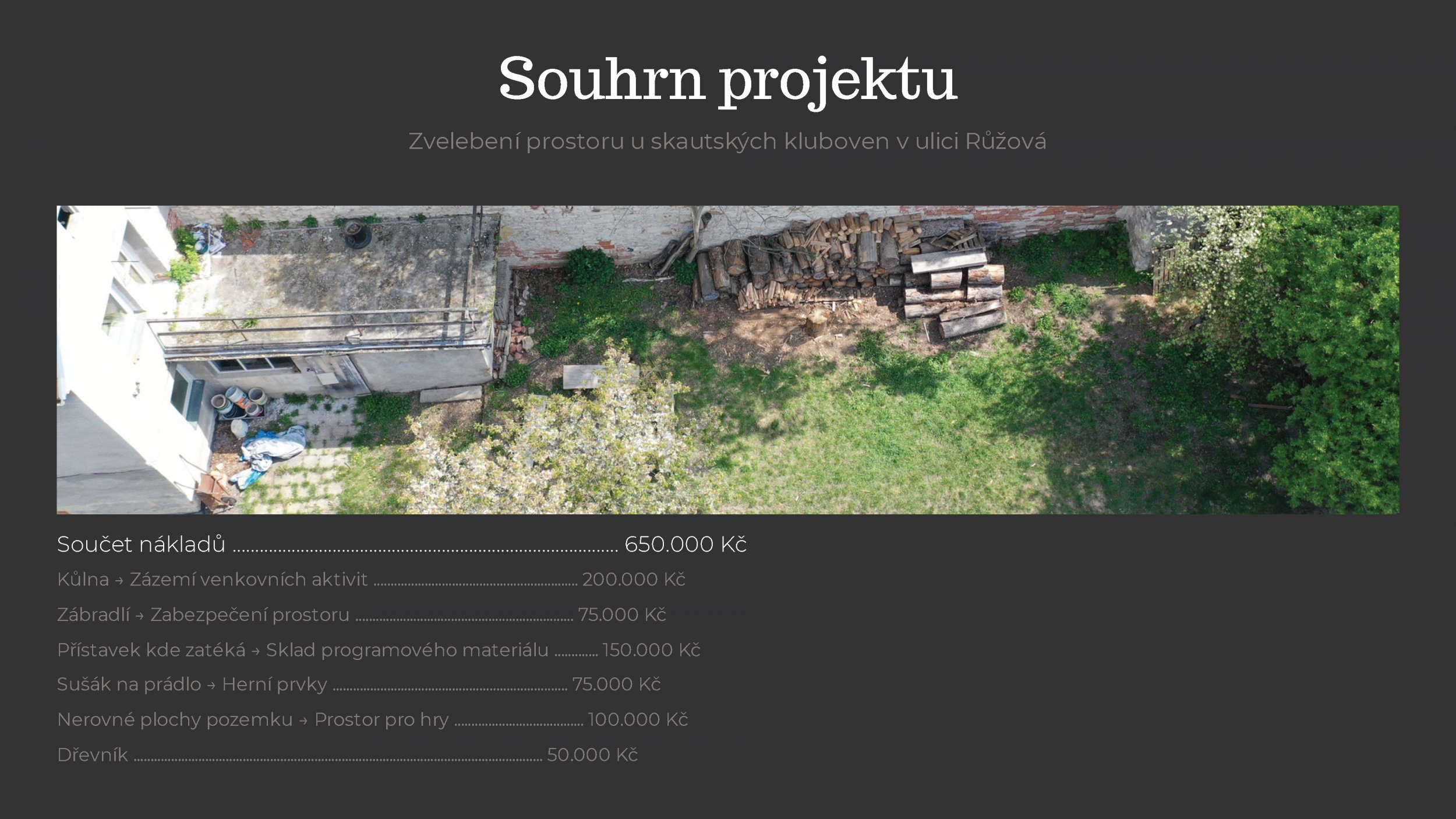 Souhrn projektu Zvelebení prostoru u skautských kluboven v ulici Růžová