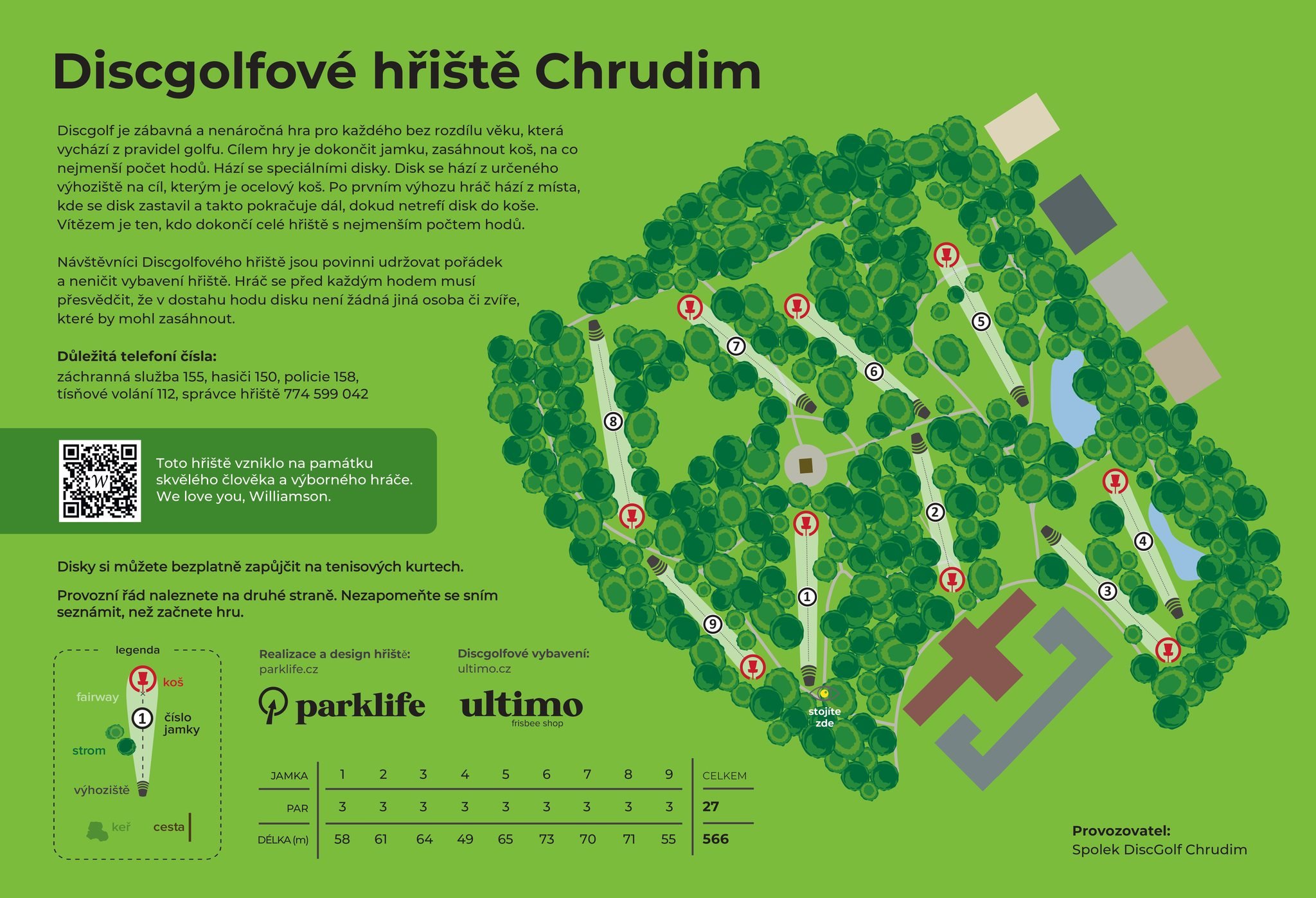 1. Infoboard – informační tabule s mapou jamek, obecnými a místními pravidly hry.