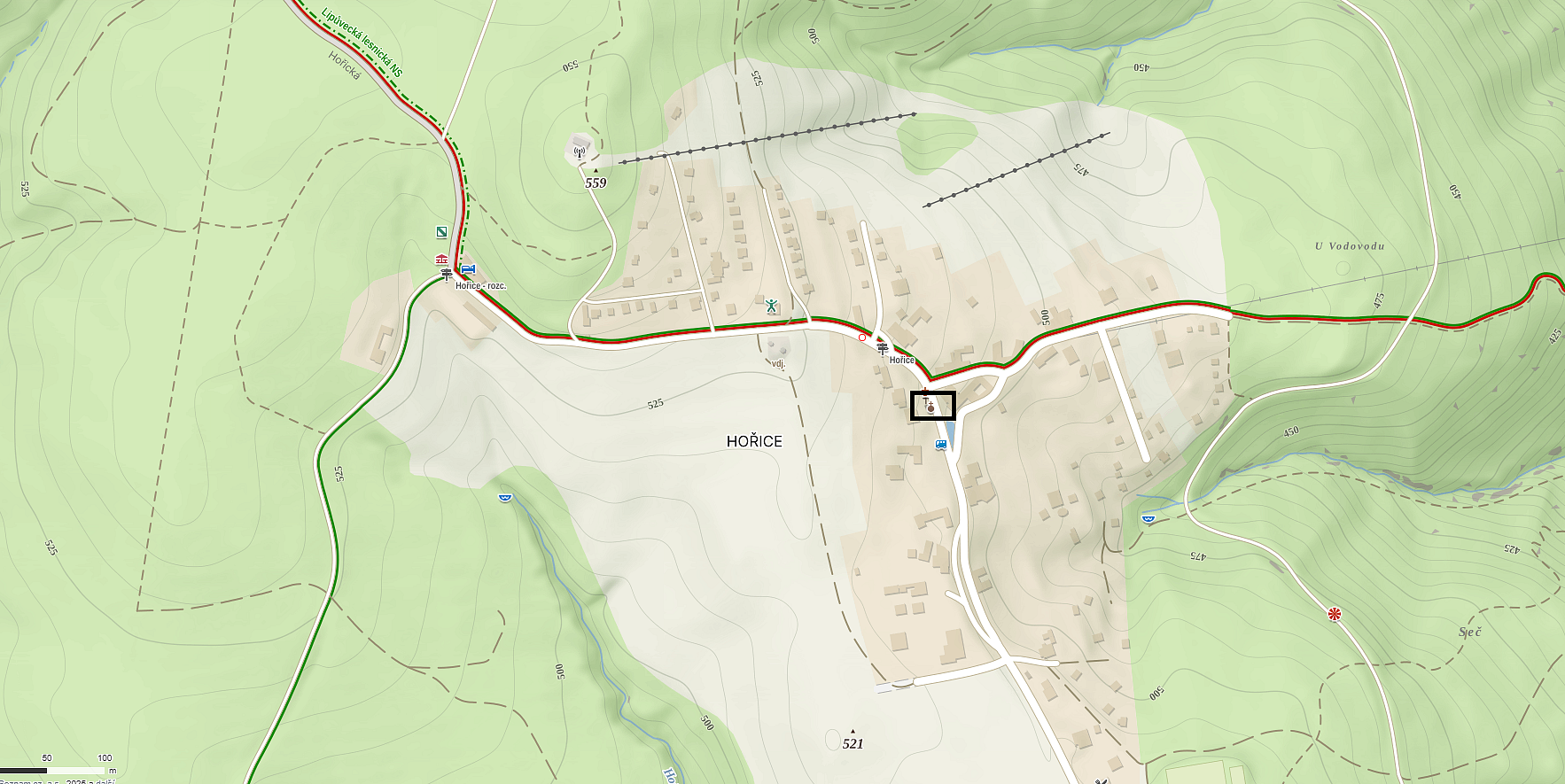 2) Horní Lhota – poblíž hospůdky U Kaštánka