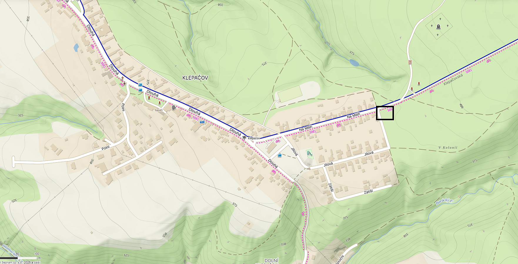 5) Klepačov – na konci ulice na Milíři u lesa, poblíž dřevěné zoo.
