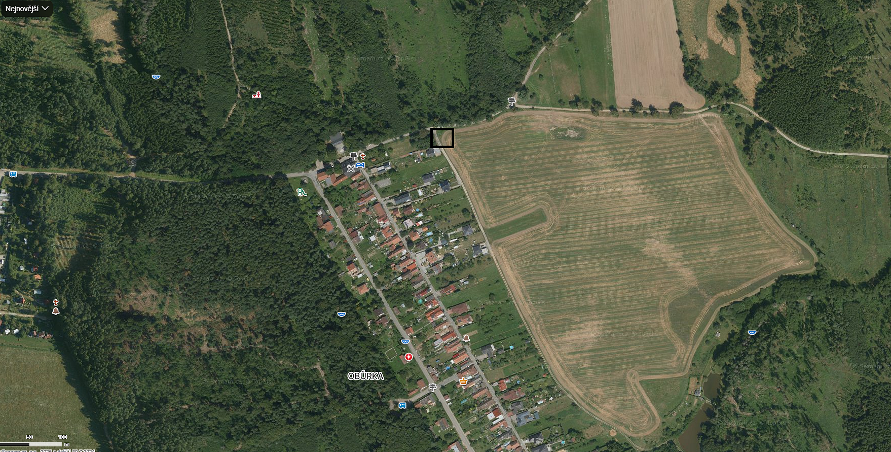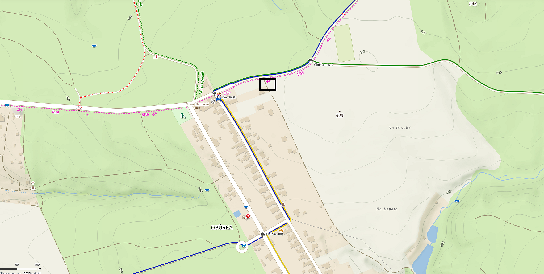 7) Obůrka – u posledního domu Obůrky, směrem k rozhledně Podvrší