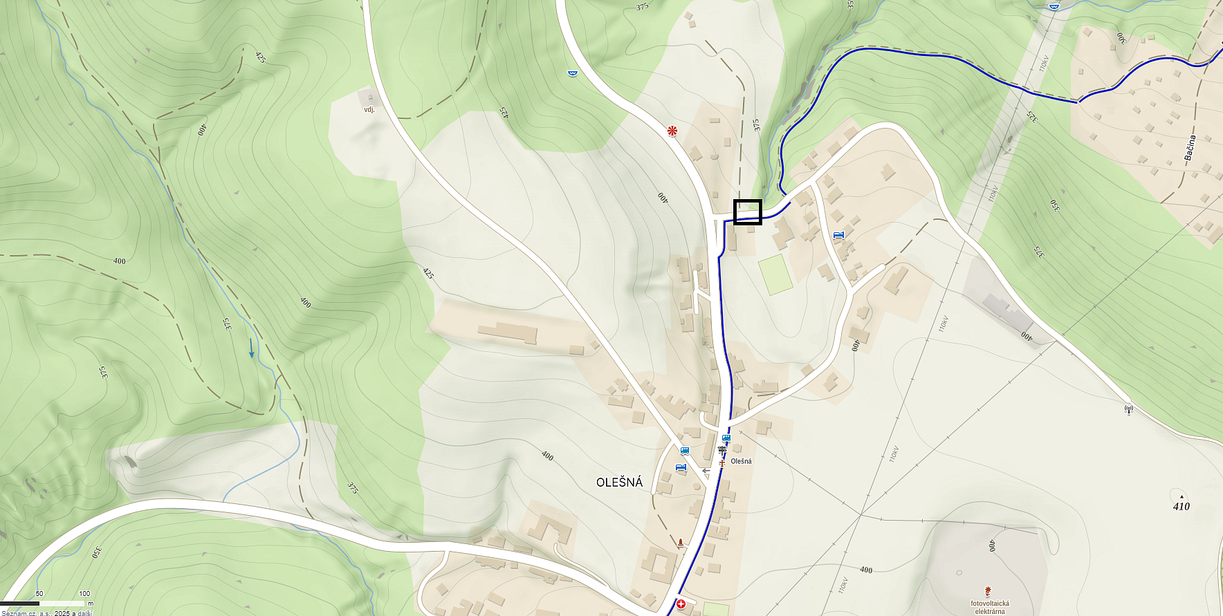3) Olešná – na začátku Olešné ve směru od Blanska, v místě, kde se napojuje modrá turistická značka