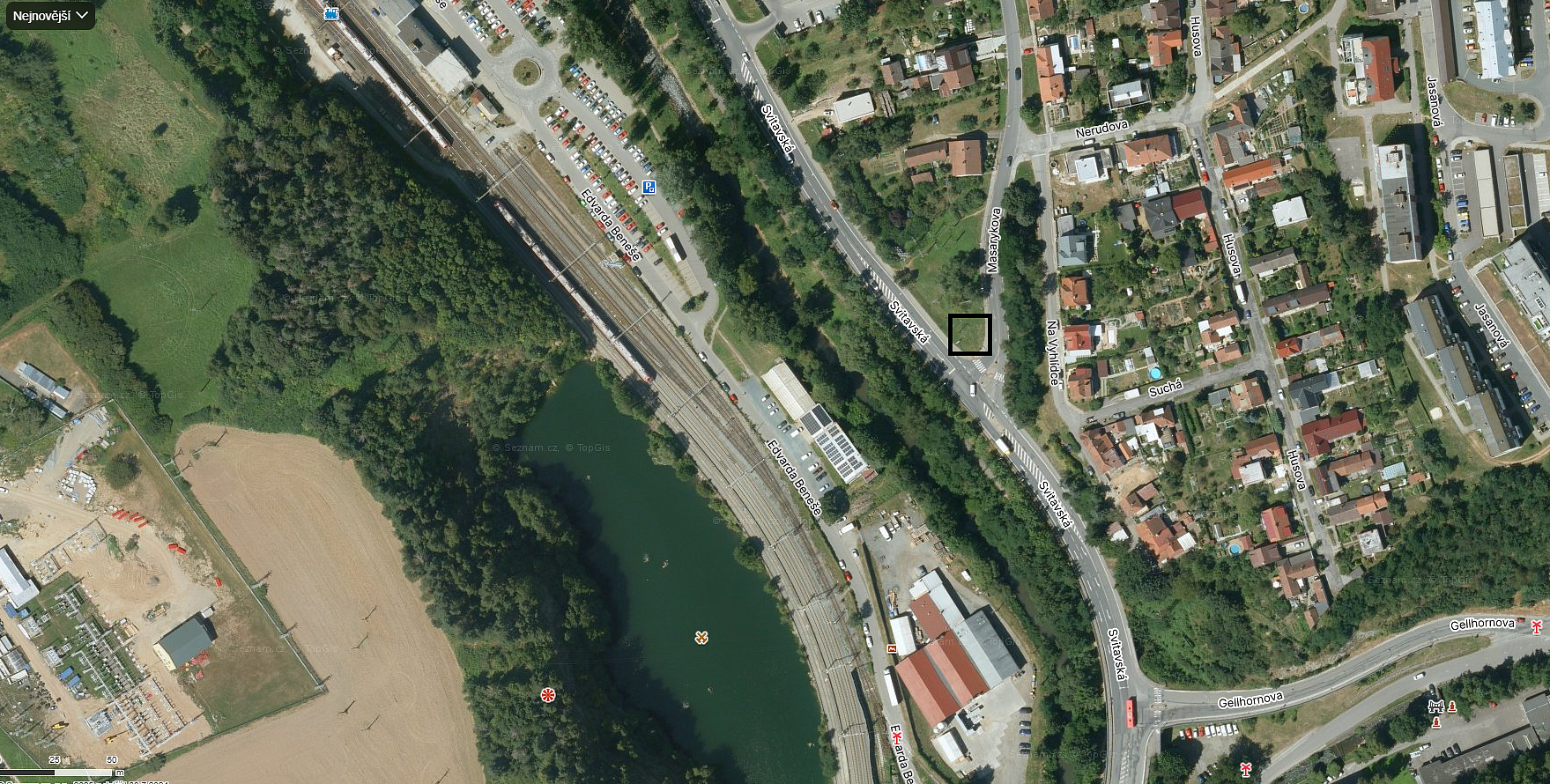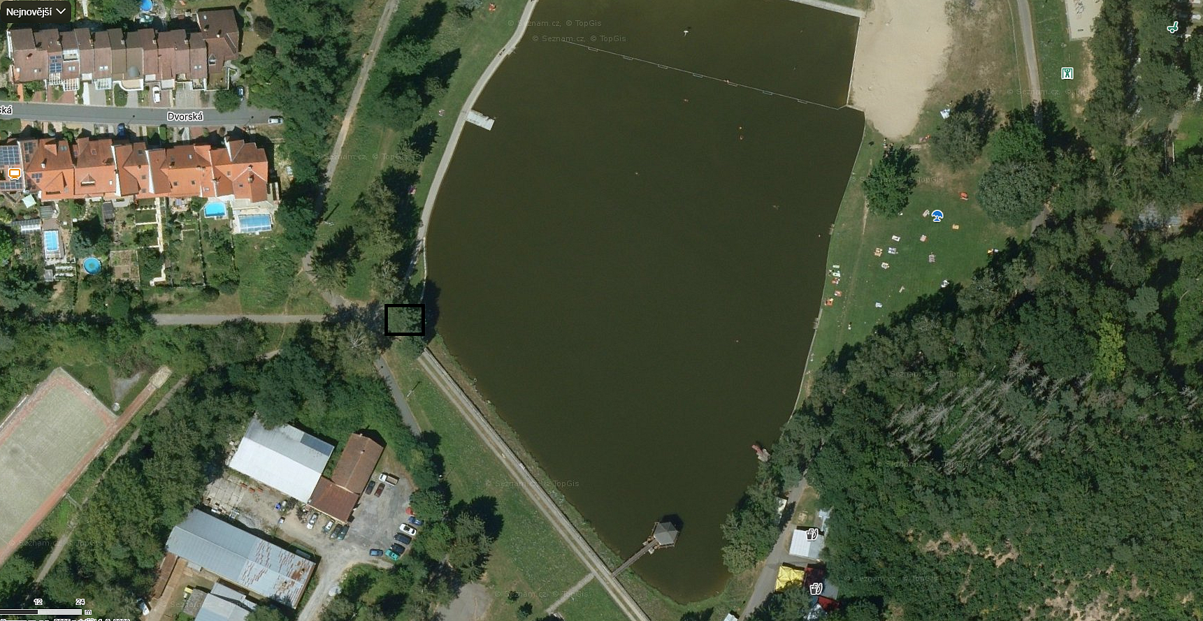 2) Přehrada – v místě kde je rozcestí na sídliště Sever a horní Pálavu