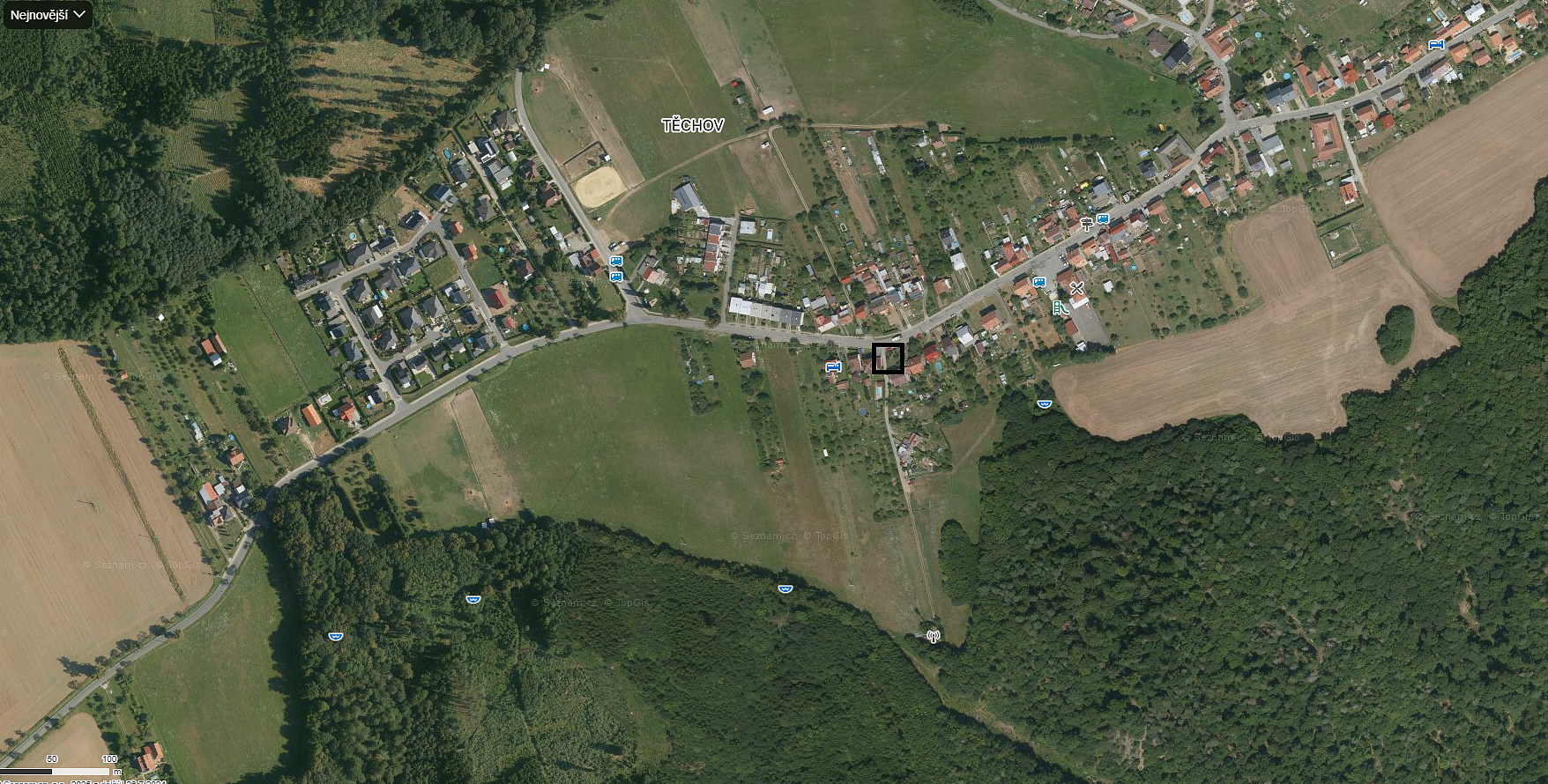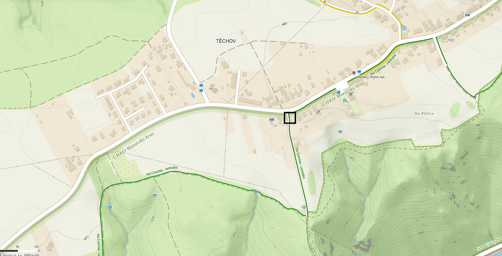 6) Těchov – uprostřed Těchova v místě, kde se napojuje zelená turistická značka na Těchov