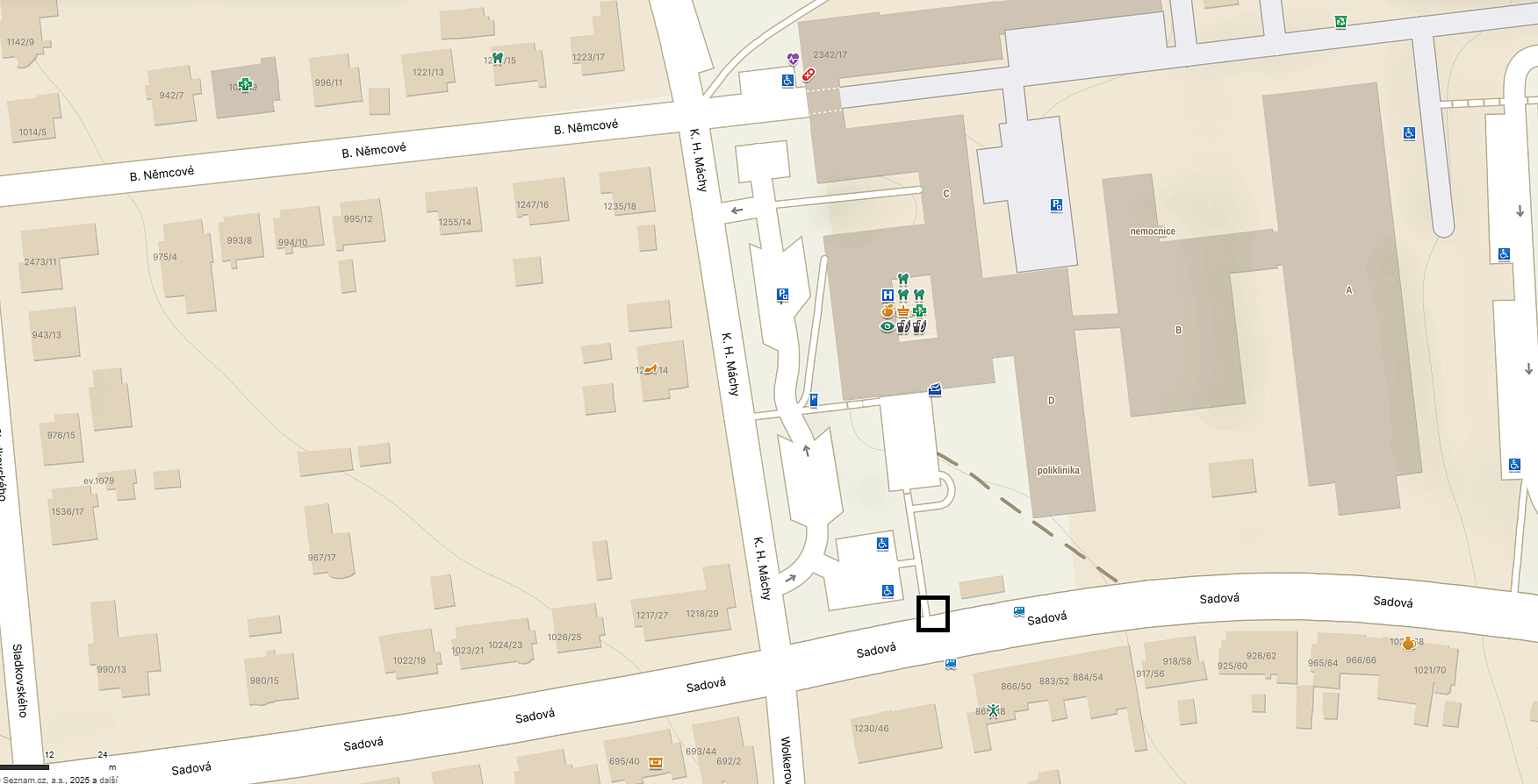 3) U nemocnice – poblíž autobusové zastávky