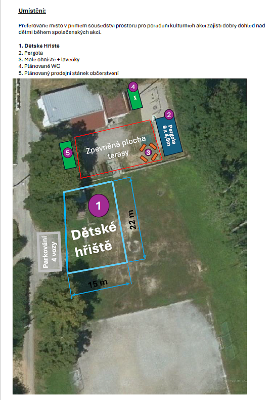 Cílem projektu je vybudovat bezpečné a dostupné dětské hřiště v Dolní Lhotě, které podpoří fyzický a sociální rozvoj dětí a zlepší jejich pohybové dovednosti. Přinese také přímou investici do kvality veřejného prostoru a do soudržnosti místní komunity v Dolní Lhotě. Hřiště bude navrženo pro děti 2-12 let s prvky pro různé věkové kategorie a s důrazem na bezpečnost, rozmanitost a odolnost vůči počasí. Bude navrženo tak, aby byl umožněn jeho další rozvoj. Naším přáním je soustředit stávající herní prvky, vhodně doplněné o prvky nové, v prostoru, kde děti během kulturních akci budou v přímém kontaktu s hlavním děním. Bude ulehčen dohled rodičů a děti nebudou vyčleněny v příliš vzdáleném prostoru. Reagujeme tak na četné žádosti ze strany rodičů a občanů Dolní Lhoty. Tímto projektem bychom vybudovali základ nového hřiště, které se v budoucnu může přiblížit obdobným dětským hřištím zbudovaným v jiných částech města, jako jsou: Lažánky, Zborovce, Pod Javory, Poříčí, Palava, Salmova atd. Veřejný prostor v komunitním centru na hřišti v Dolní Lhotě funguje jako centrum setkávání občanů a investice do tohoto veřejného prostoru zlepší celkové vnímání Dolní Lhoty našimi občany jako městské části, která je kvalitou života rovnocenná s ostatním částmi města Blanska. Areál je rovněž pravidelně využíván dětmi z místní mateřské a základní školy, a to v rámci výuky nejen jako sportoviště, ale také jako zařízení, které umožňuje žádoucí přirozené pohybové aktivity během výuky. Dětské hřiště v komunitním areálu je dalším krokem pro realizaci vhodných úprav tohoto místa a je v souladu s koncepcí, kterou občanská aktivita v Dolní Lhotě pro tento areál předkládá.